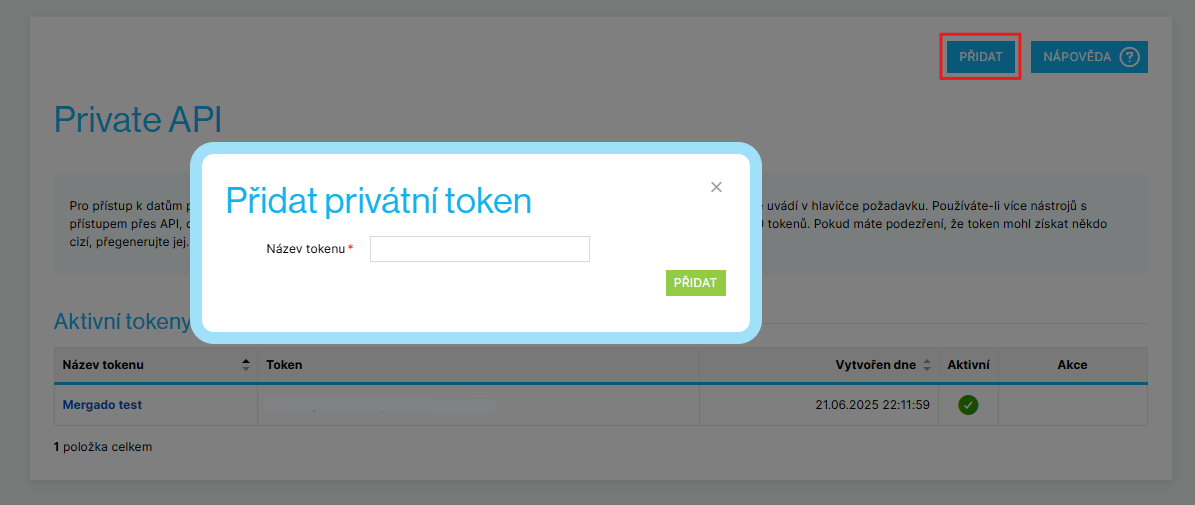 V administraci Shoptet Premium jděte do Propojení > Private API