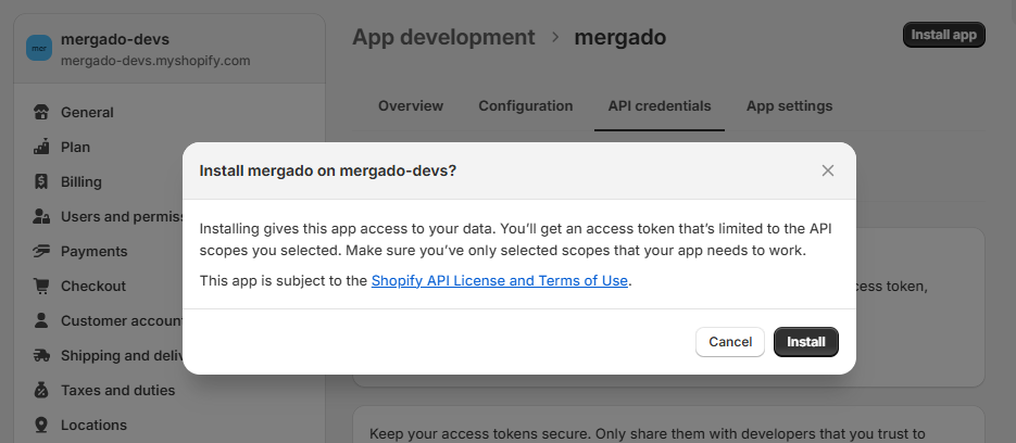 Aby mělo Mergado Marketplaces API přístup k vašemu Shopify účtu, je nutné si vytvořit aplikaci s potřebnými oprávněními: